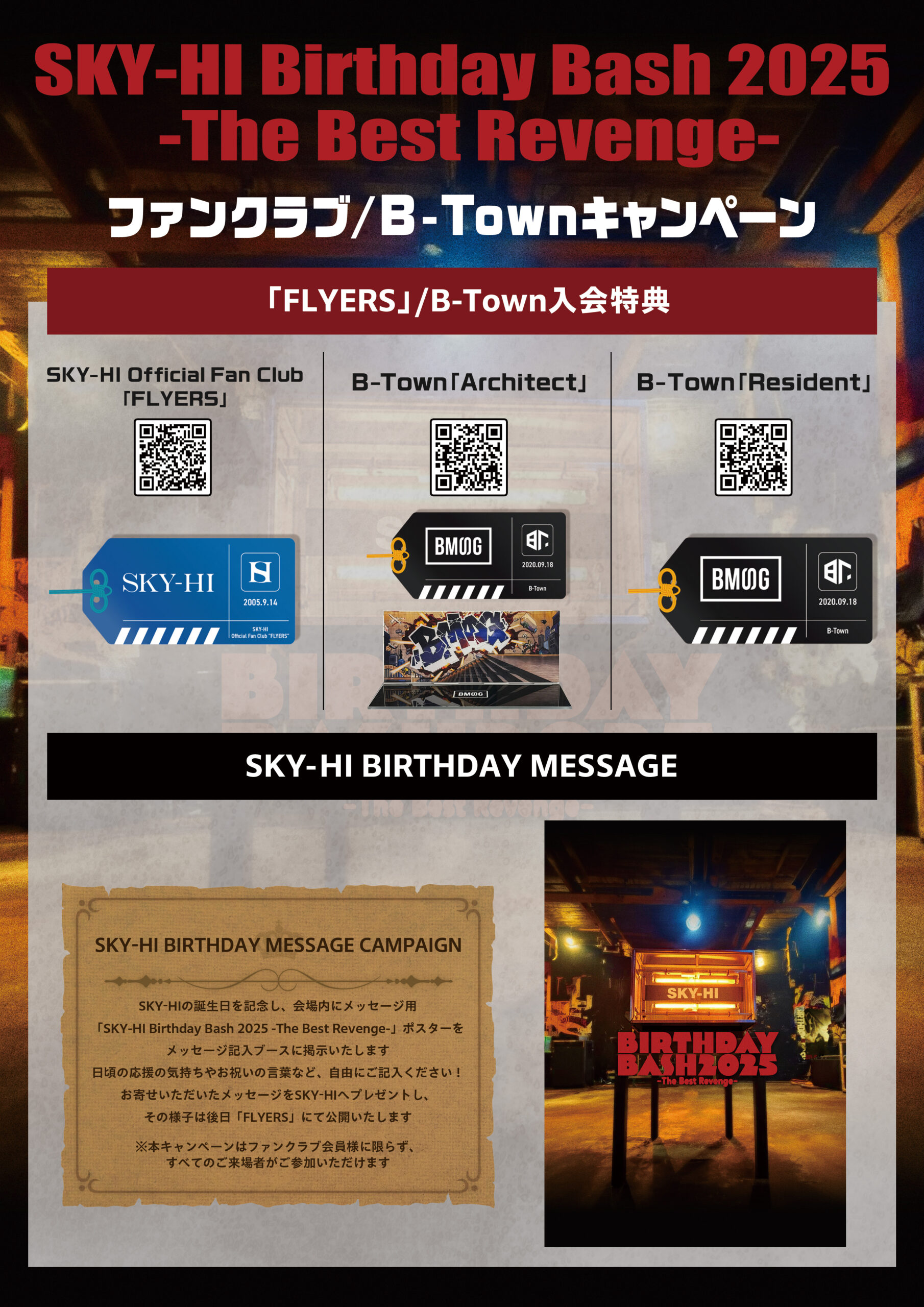 「SKY-HI Birthday Bash 2025 -The Best Revenge-」会場にてファンクラブ / B-Town入会紹介キャンペーン&バースデーメッセージキャンペーン実施